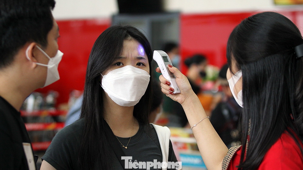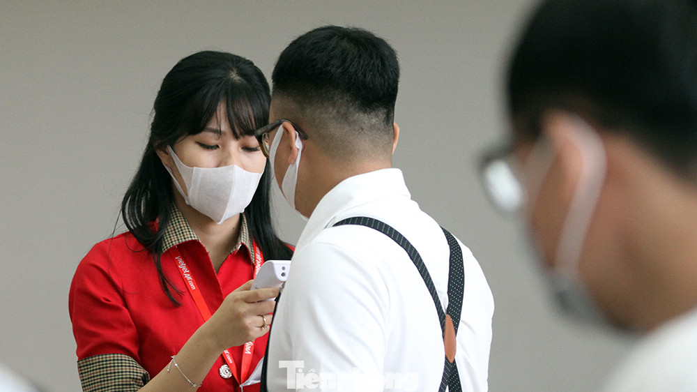 Việc kiểm tra thân nhiệt cũng như khai báo y tế vẫn được thực hiện nghiêm ngặt tại sân bay Nội Bài từ đầu năm đến nay.