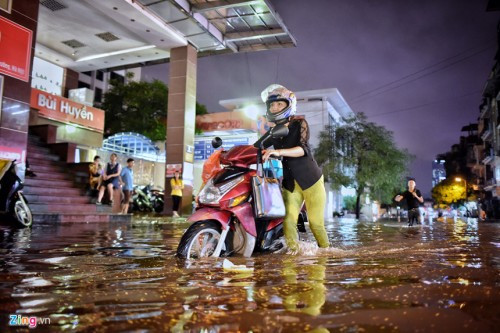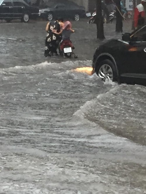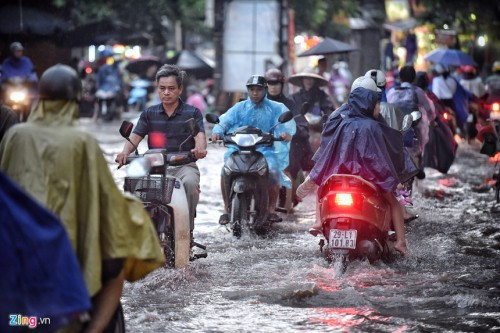 Phố Phan Văn Trường (quận Cầu Giấy) như thường lệ, cứ mưa lớn là ngập.