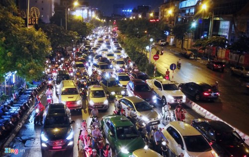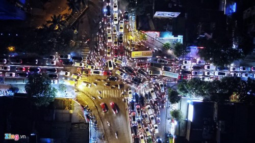 Các tuyến đường Xuân Thủy, Nguyễn phong Sắc, Cầu Giấy xe cộ ùn ứ kéo dài vài km. Ảnh: Zing
