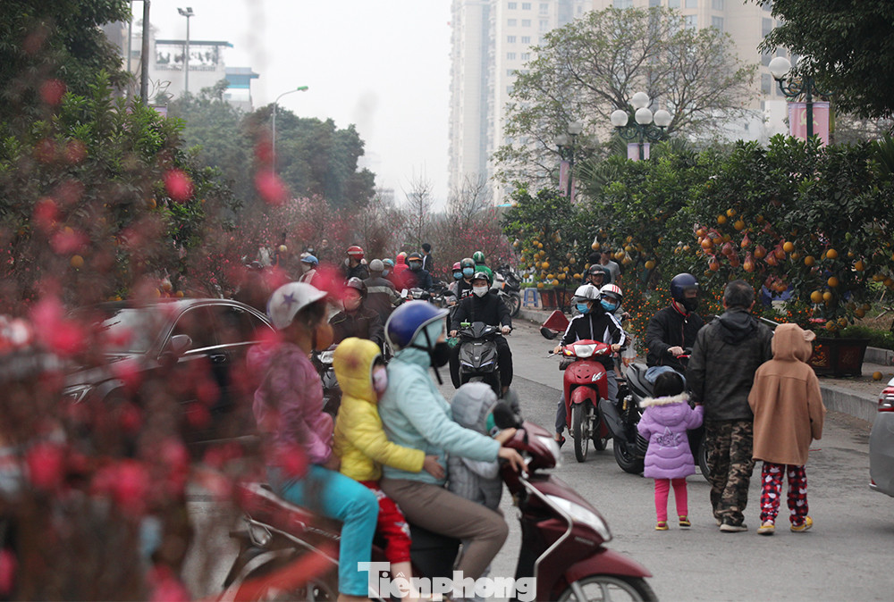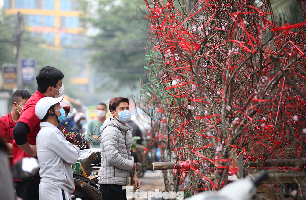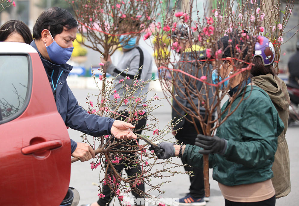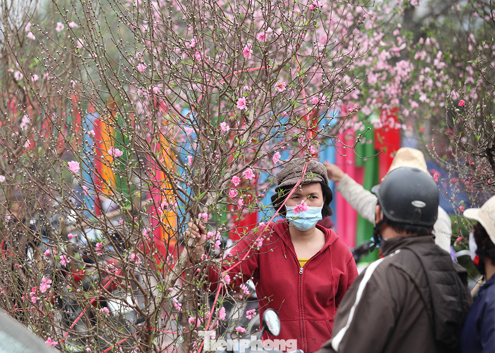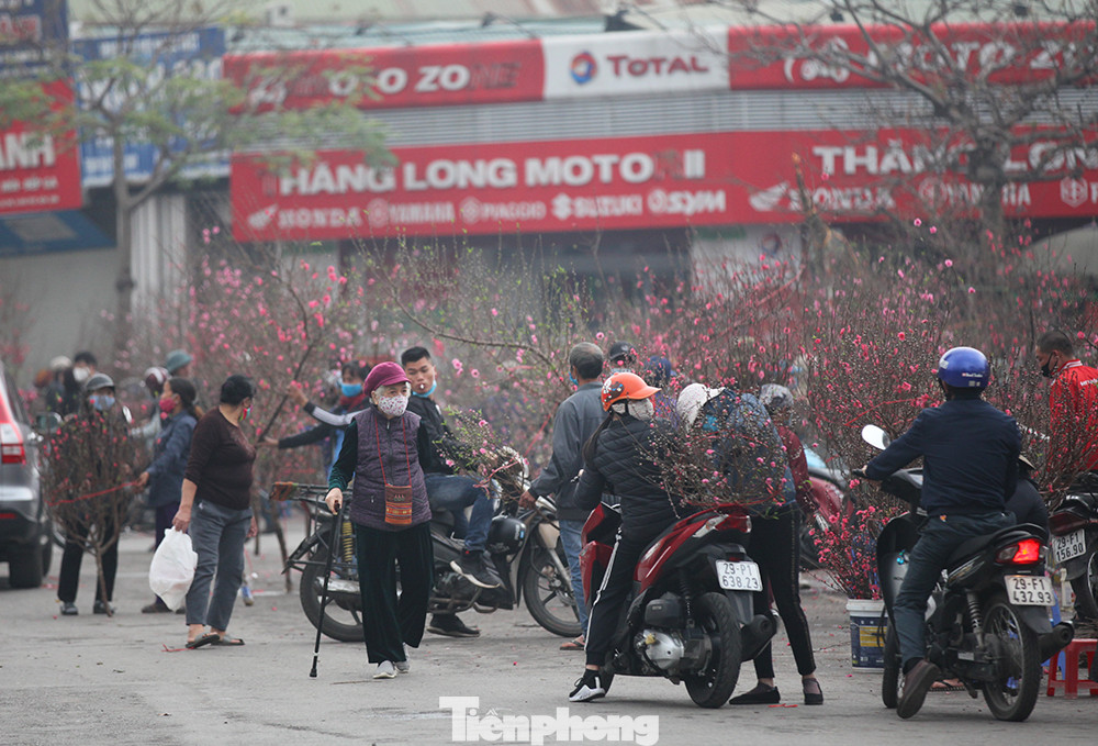 Gần trưa, chợ hoa tấp nập người dân chen chân chọn đào.