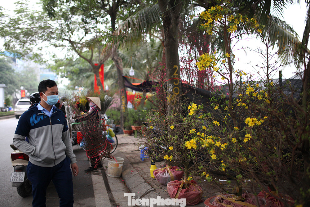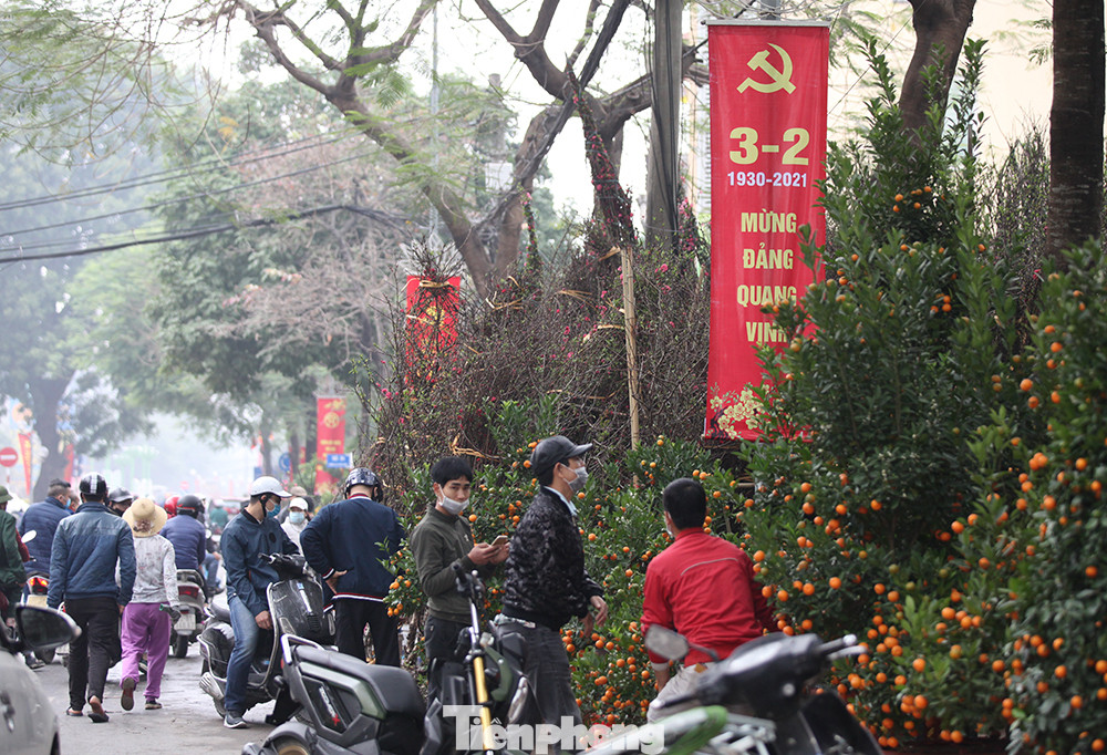 Dọc 2 tuyến đường chợ hoa dọc đường Lạc Long Quân trở nên tấp nập mua bán hoa đào, cây quất cảnh.