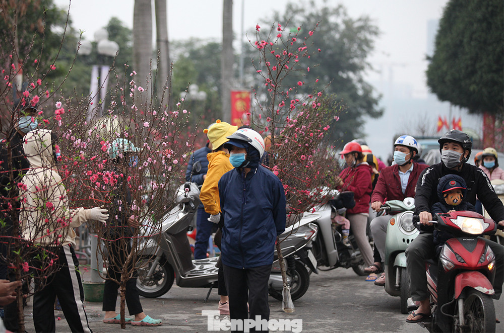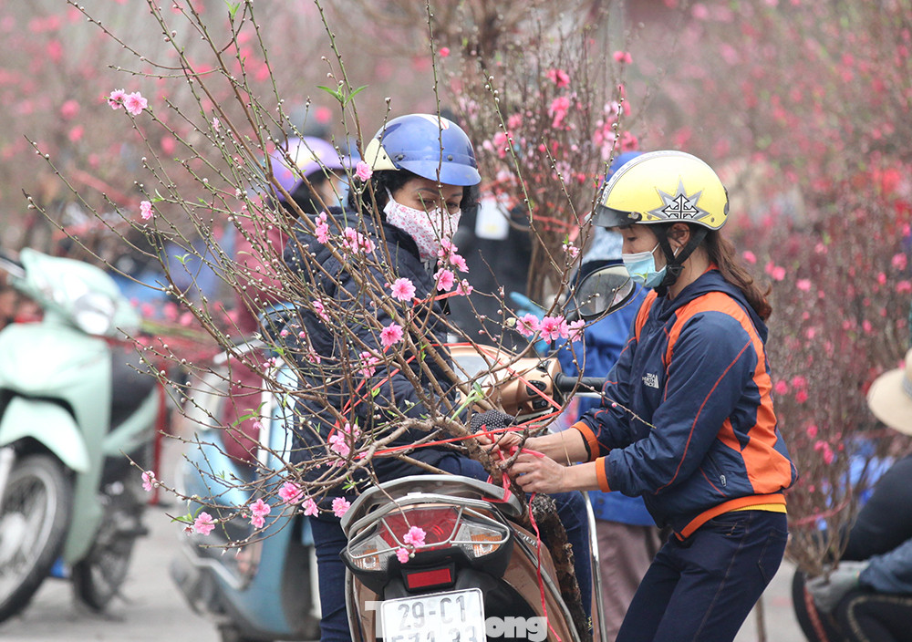 Đào được vận chuyển về nhà tưng bừng nở, báo hiệu mùa xuân đang đến rất gần.