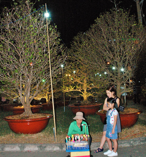 Măc cho lạc giuwxax một rừng đào cổ thụ mỗi cây có giá mấy chục triệu đồng, nhưng cô bé này chỉ quan tâm đến những con tò he của cô bán dạo.