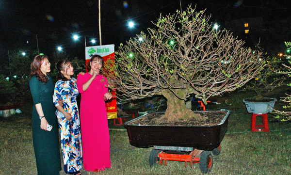 Các cô gái Sài Gòn ăn diện đi chơi chợ hoa xuân làm dáng bên cây mai có giá 3 tỷ đồng.