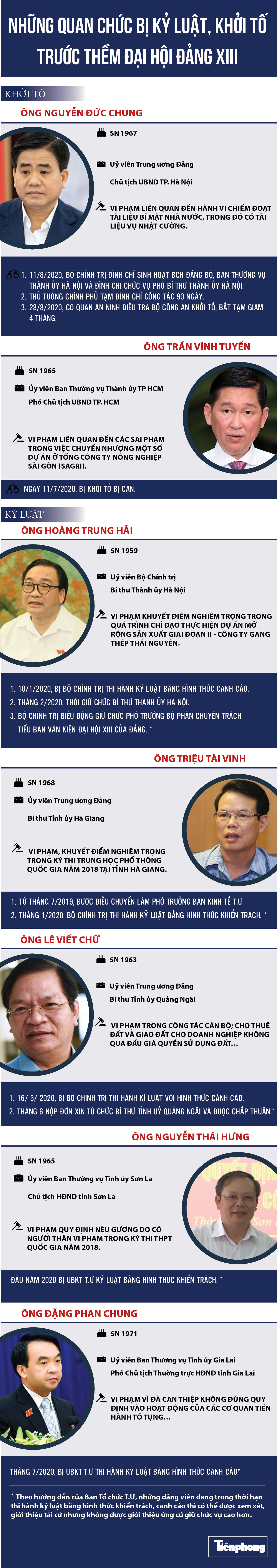 TPO - 9 tháng trước thềm Đại hội Đảng bộ các tỉnh, thành phố và 1 năm trước thềm Đại hội đại biểu toàn quốc lần thứ XIII của Đảng, nhiều quan chức diện Ủy viên Bộ Chính trị, Uỷ viên Trung ương, Uỷ viên Ban Thường vụ tỉnh ủy trong độ tuổi tái cử bị kỷ luật, “ngã ngựa”, thậm chí có người còn rơi vào vòng lao lý.