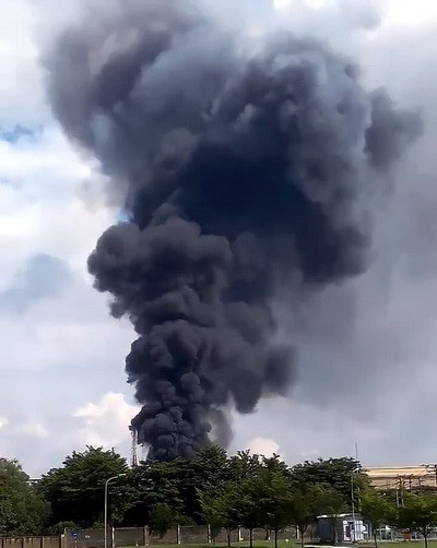 Khói bốc cao hàng chục mét ở công ty Vedan. Ảnh: N.S