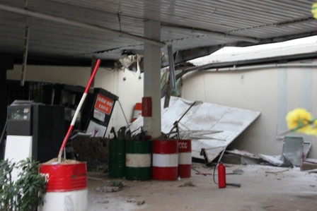 Tuy nhiên, sức công phá của vụ nổ đã làm thủng mái trạm xăngvà 5 trụ bơm cũng bị hư hỏng nặng.