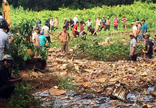 Sáng 21/9, Công an tỉnh Bình Phước đã huy động hàng trăm người gồm thợ lặn chuyên nghiệp, người dân, dân phòng... ngụp lặn, đào bới để tìm nữ sinh Vũ Thảo Uyên (lớp 11) bị nước mưa cuốn mất tích.