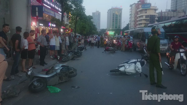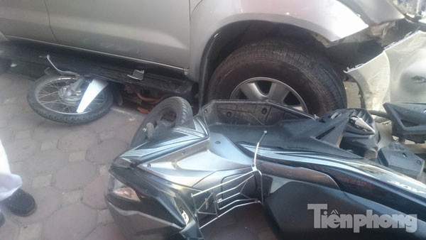 Theo một số người dân, vào thời điểm đó, chiếc xe Fortuner mang BKS 30P-2153 đang lưu thông đến nút giao Xã Đàn - Phạm Ngọc Thạch bất ngờ đâm vào hàng loạt xe máy trên đường.