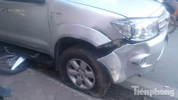 Chiếc xe Fortuner bị nổ hai lốp bên phải.