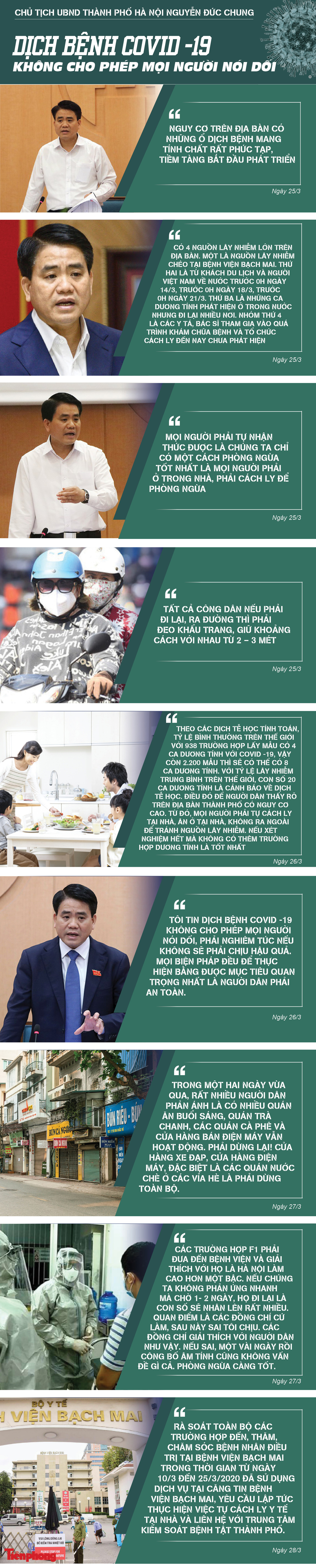 Chủ tịch UBND thành phố Hà Nội Nguyễn Đức Chung đưa ra nhiều chỉ đạo quyết liệt để phòng, chống COVID-19 lây lan trên địa bàn thành phố.