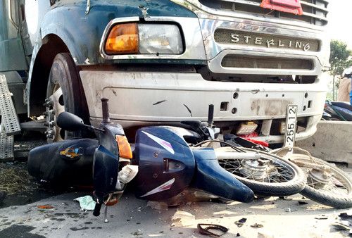 Có 6 xe máy bị xe bồn húc văng, nằm la liệt. Khoảng 7 người bị thương, trong đó hai nạn nhân nằm dưới gầm container được mọi người kéo ra ngoài, đưa đi cấp cứu.