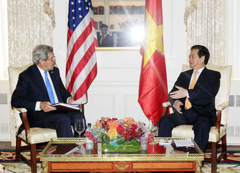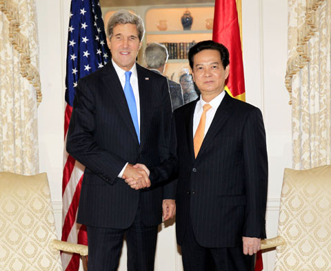 | Ngoại trưởng Mỹ John Kerry tiếp Thủ tướng Nguyễn Tấn Dũng. Ảnh: Đức Tám (TTXVN). |