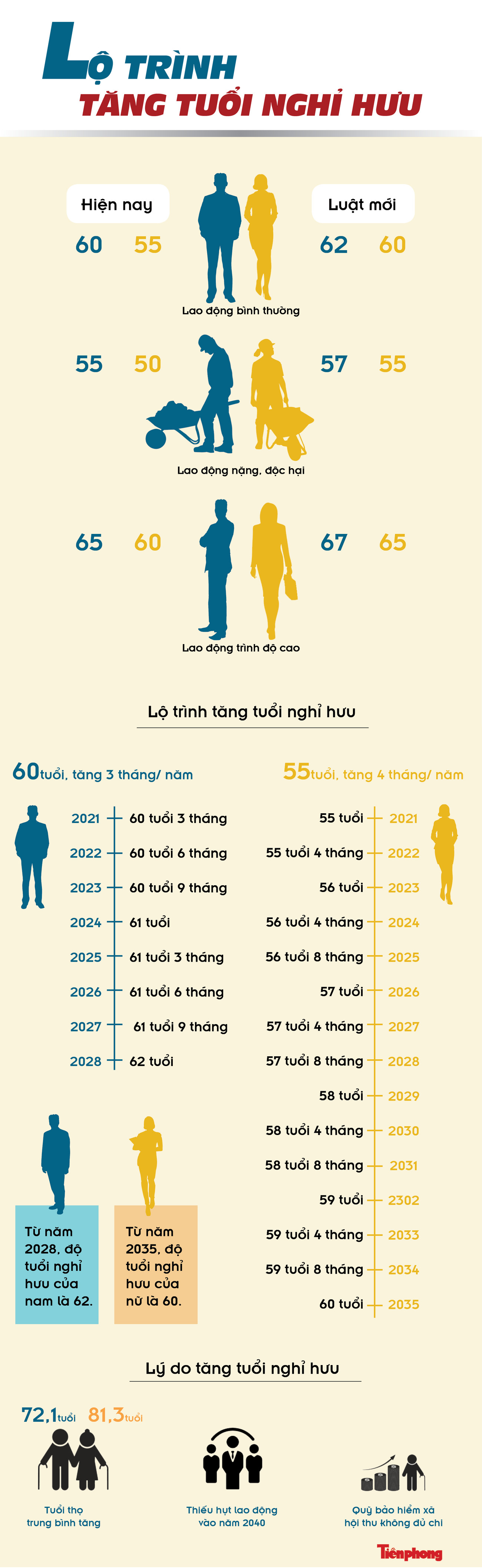 TPO - Tuổi nghỉ hưu của người lao động được điều chỉnh theo lộ trình cho đến khi đủ 62 tuổi đối với nam vào năm 2028 và đủ 60 tuổi đối với nữ vào năm 2035.