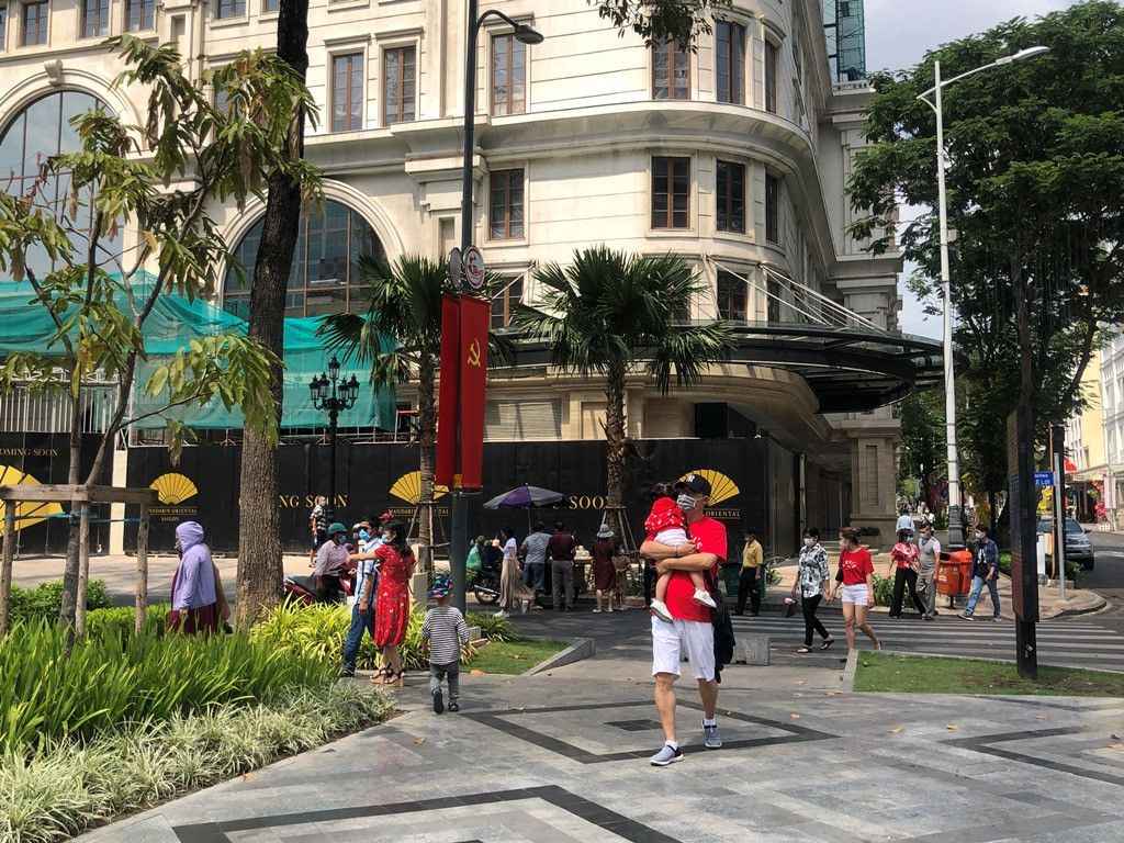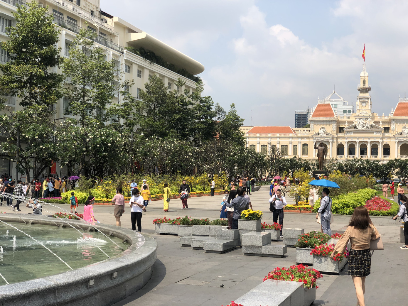Khu vực trước quảng trường UBND TPHCM nhộn nhịp du khách.