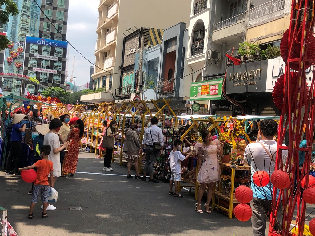 Đường Đồng Khởi (Q.1), người Sài Gòn xúng xính quần áo đẹp đi chơi Tết, dạo phố.
