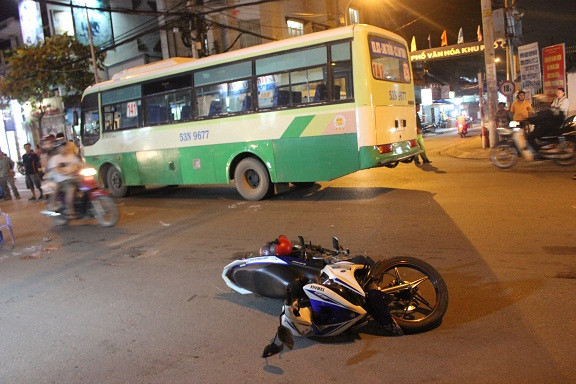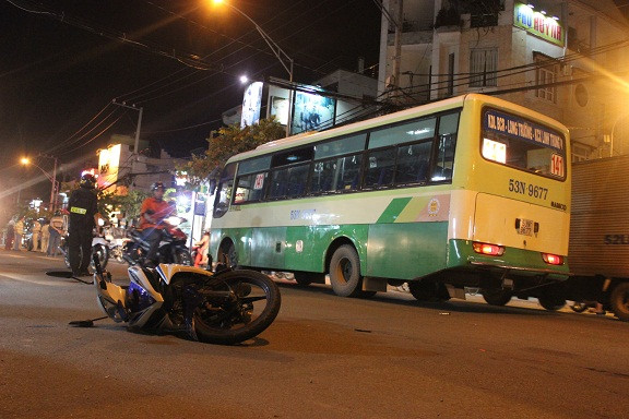 Lúc này, hai thanh niên tiếp tục cho xe chạy. Chạy được vài chục mét thì chiếc xe máy này lại tiếp tục va chạm với chiếc xe buýt số 141 mang biển số 53N - 9677, đang lưu thông theo hướng ngược lại làm hai thanh niên ngã xuống đường, bất tỉnh. Lúc đó hai nạn nhân nồng nặc mùi bia rượu