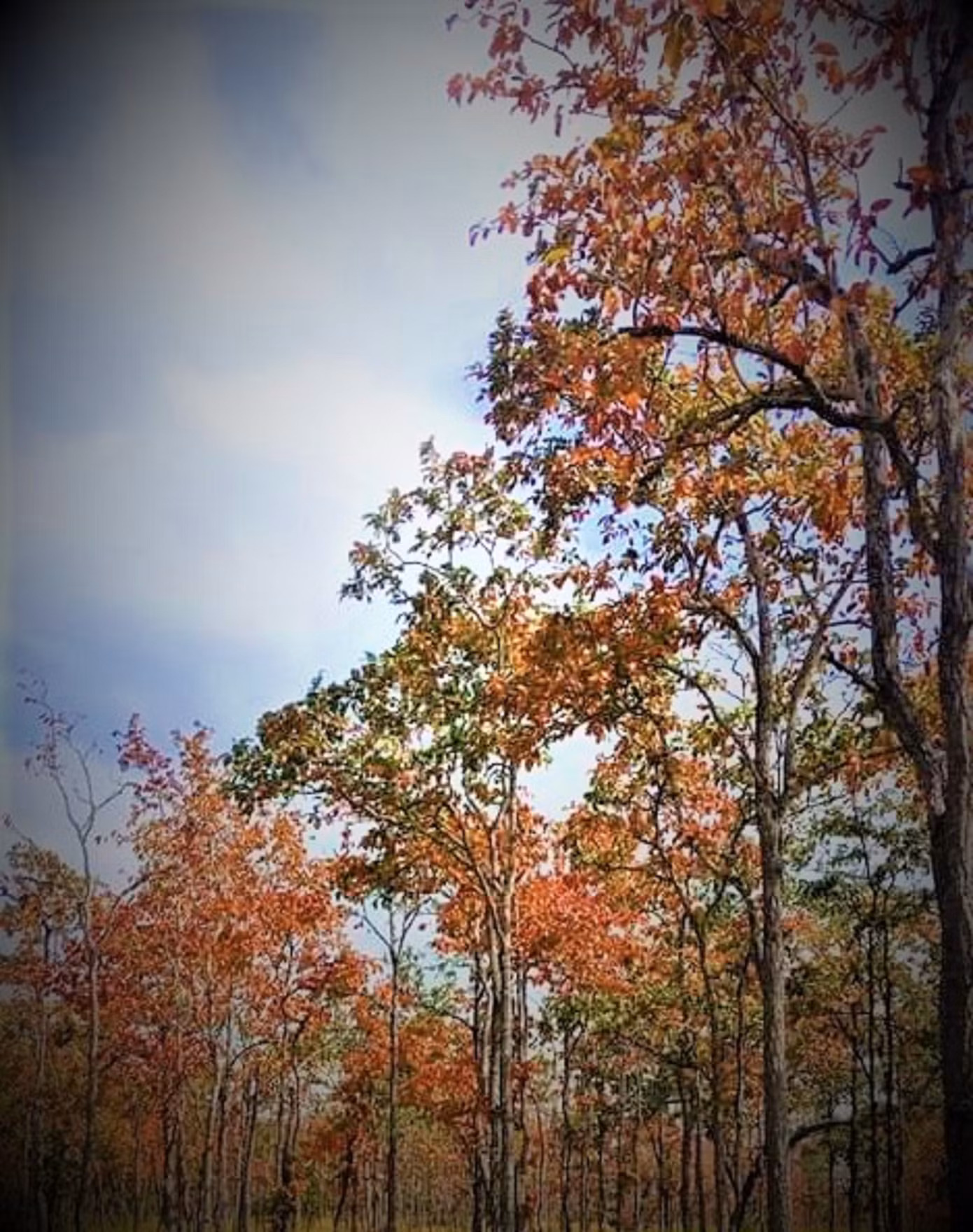 Khi mưa rừng dứt, ánh mặt trời chiếu gắt hơn báo hiệu mùa xuân về. Rừng cây bắt đầu chuyển sắc từ xanh sàng vàng rồi dần rụng đi trước khi mùa khô gõ cửa. Đây được xem là đợt thay lá đẹp nhất trong năm.