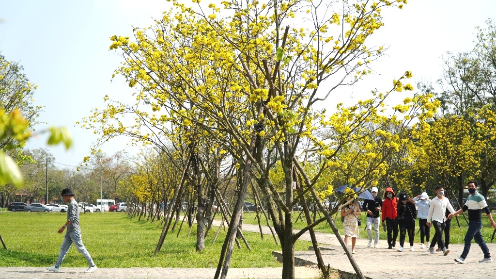 Chỉ sau một năm, đến Tết Tân Sửu 2021, hơn 100 cây mai đồng loạt nở hoa vàng rực cả một góc Kinh thành Huế.