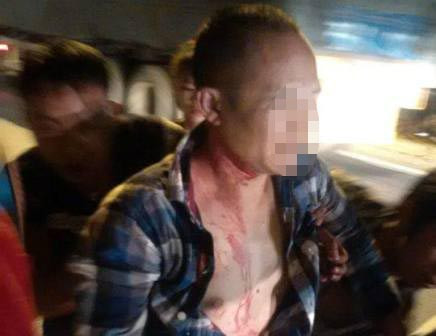 Trước tình thế trên, tài xế xe đầu kéo đã quỳ xuống đường van xin để không bị đánh, nhưng người trên xe tải vẫn dùng gậy vụt tới tấp về phía nạn nhân.
