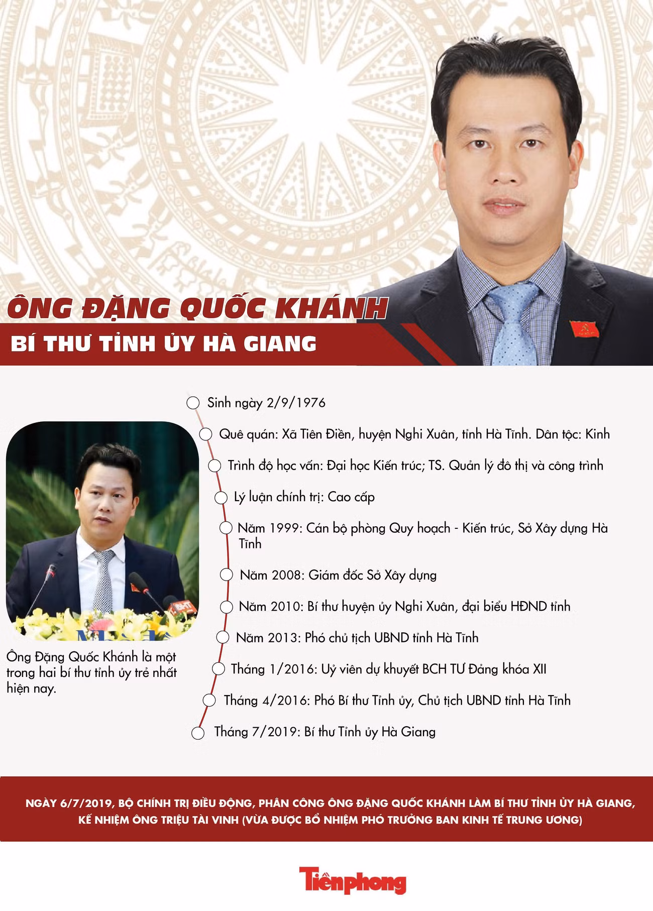 TPO - Tân Bí thư Tỉnh ủy Hà Giang Đặng Quốc Khánh, người kế nhiệm ông Triệu Tài Vinh (vừa được bổ nhiệm Phó trưởng Ban kinh tế Trung ương) là một trong hai bí thư tỉnh ủy trẻ nhất hiện nay.
