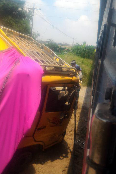 Xe tải bị hư hỏng sau cú va chạm. Ảnh otofun.