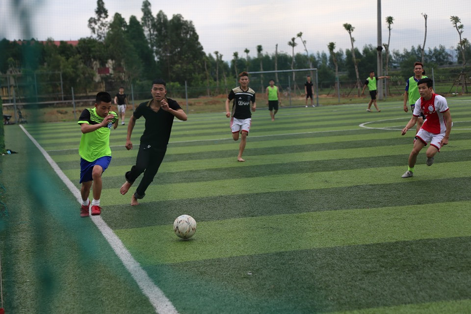 Chiều 3/3, tại sân bóng trung tâm xã Sơn Lôi, nhiều thanh niên tập trung thi đấu bóng đá
