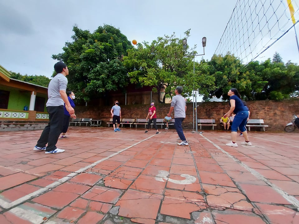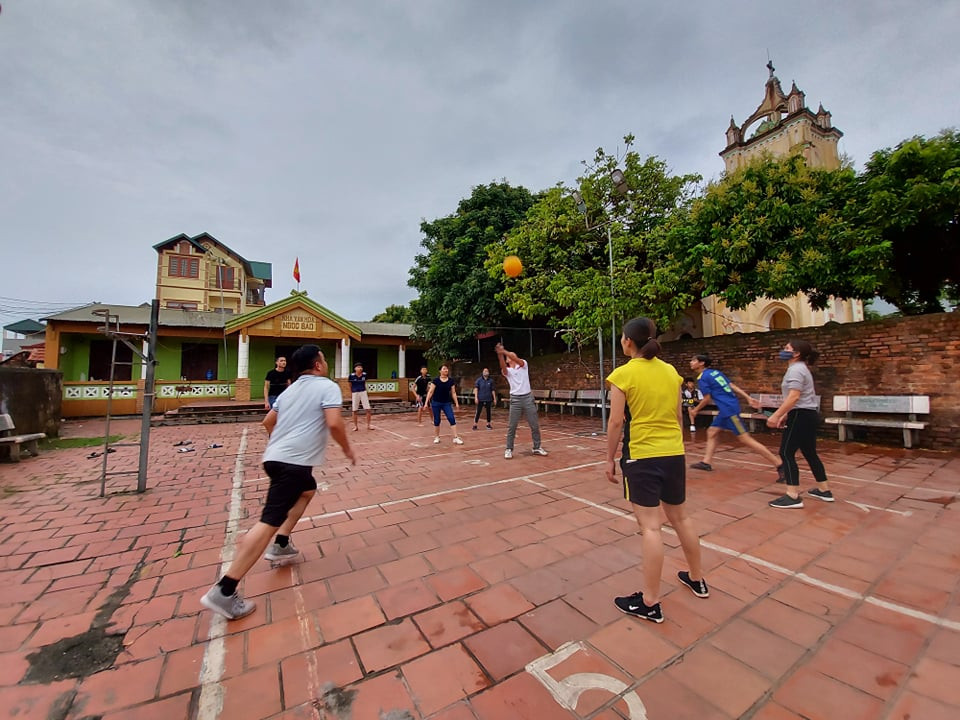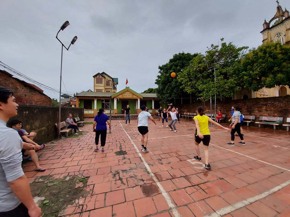 Trong khi đó, những người lớn tuổi tổ chức thi đấu bóng chuyền