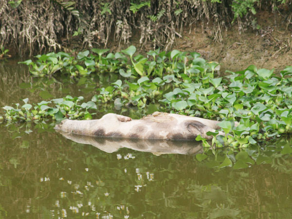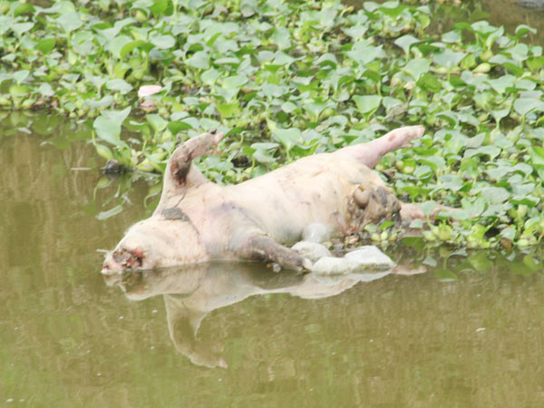 TPO - Kênh tiêu S17 thuộc địa bàn huyện Bình Lục (Hà Nam) đang bị ô nhiễm nặng. Nhiều con lợn chết bị vứt nổi trên kênh, bốc mùi rất nặng.