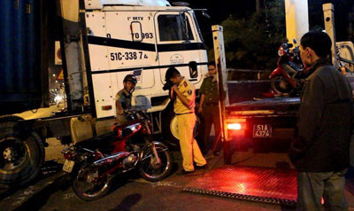 Khi qua giao lộ quốc lộ 1A-đường số 12 khoảng 100m thuộc địa bàn khu phố 4, phường Linh Trung, quận Thủ Đức, TPHCM, xe máy bất ngờ mất lái tông thẳng vào hông xe container mang biển số 51C - 338.74 do tài xế Mai Trọng Điệp (quê tỉnh Bắc Ninh) điều khiển, lưu thông cùng chiều phía trước và đang rẽ phải.