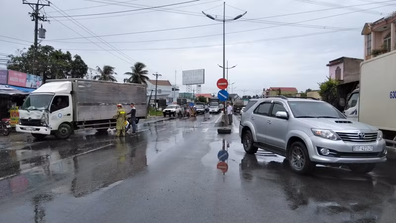 Trong khi xe đang đi đến điểm mở dải phân cách trên đường dẫn, đoạn ấp 5, xã Tam Hiệp, huyện Châu Thành thì bất ngờ bị xe ô tô tải mang BKS 69C-034.52 (chưa rõ họ tên tài xế) điều khiển đang lưu thông từ phía sau trờ tới tông vào phần đuôi.