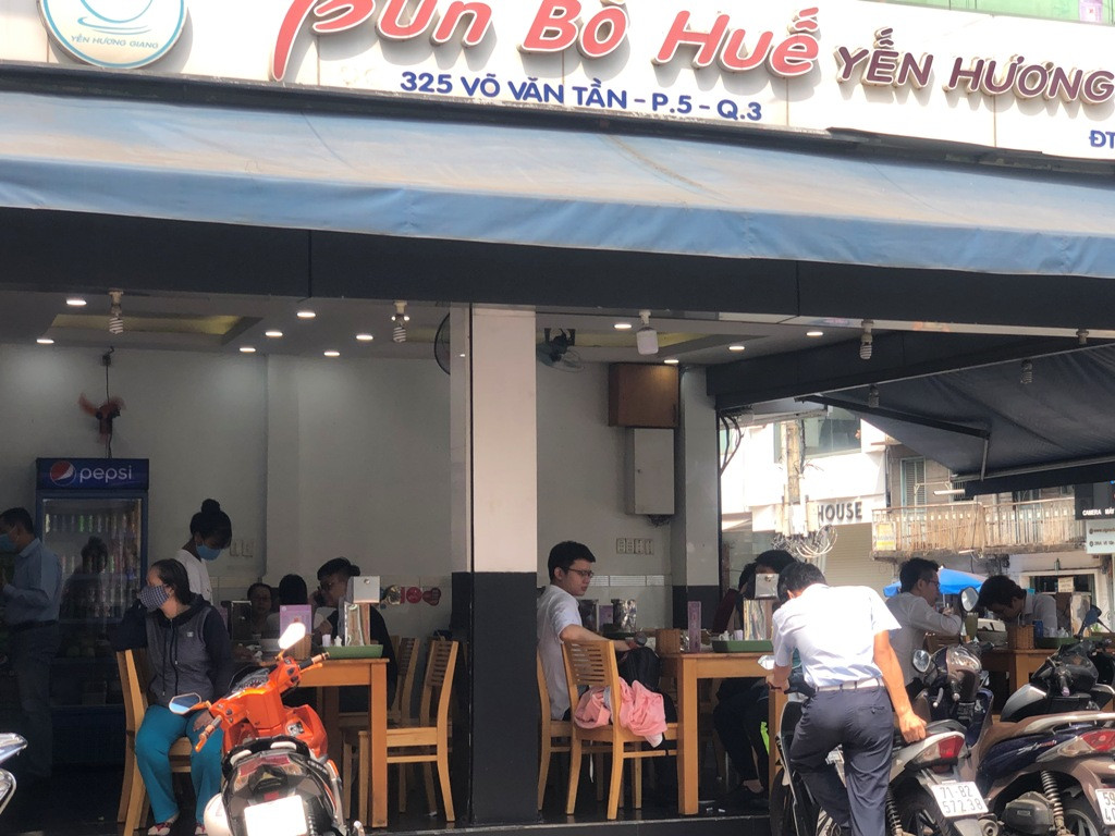 Quán bún bò Huế đường Võ Văn Tần không chỉ bán đem về mà còn phục vụ tại chỗ.