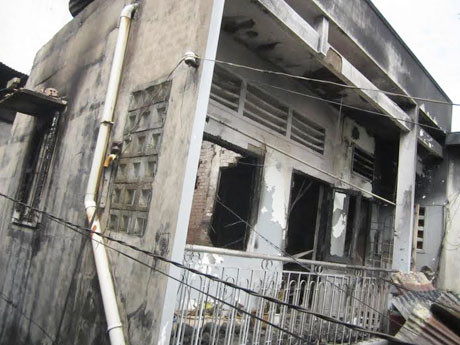Ngọn lửa nhanh chóng cháy lan bao phủ toàn bộ căn nhà, nhiều mái tôn bị sức nóng làm bật tung khỏi xà nhà, một số mảng tường bị đổ sập.