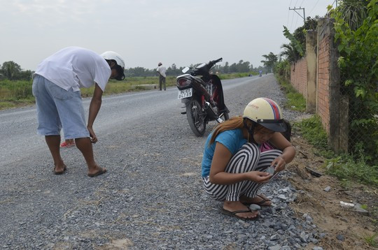 Vài người đang cần mẫm giở đá cầu may trên con đường này vào sáng 11-12 cũng khẳng định hôm qua đã có thêm vài người nhặt được “vàng” và bán được vài triệu đồng.