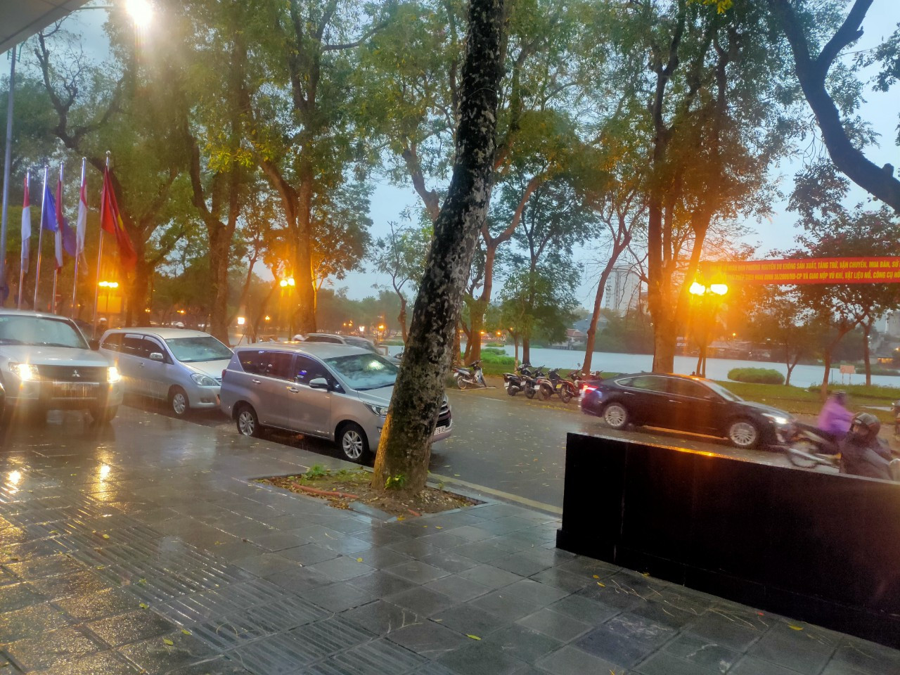 Vào lúc 17g chiều 13/5 bầu trời Hà Nội bất chợt tối sầm, gió rít mạnh rồi đổ mưa lớn. Nhiều học sinh tan học không kịp về, trong khi các phụ huynh nhiều người trở tay không kịp.