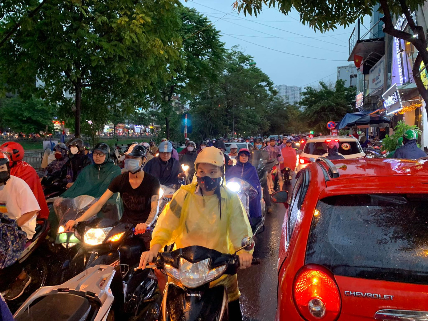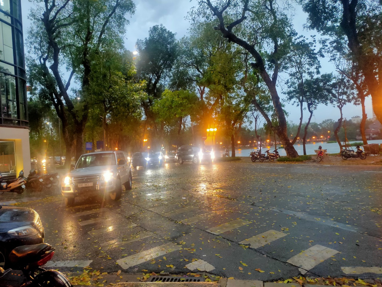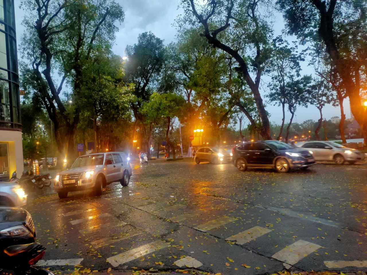 Khu vực phố Nguyễn Trãi đang có mưa. Ảnh Như Ý
