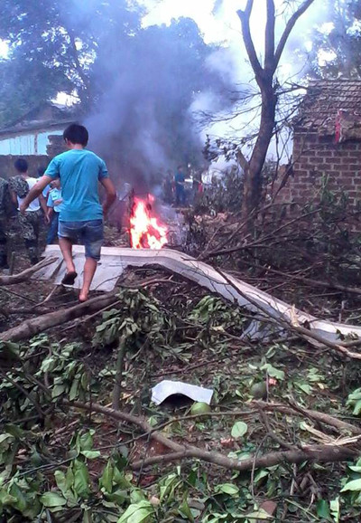 Chiếc máy bay được cho là rơi sát khu vực dân cư. Ảnh: Quang Dũng (VnExpress).