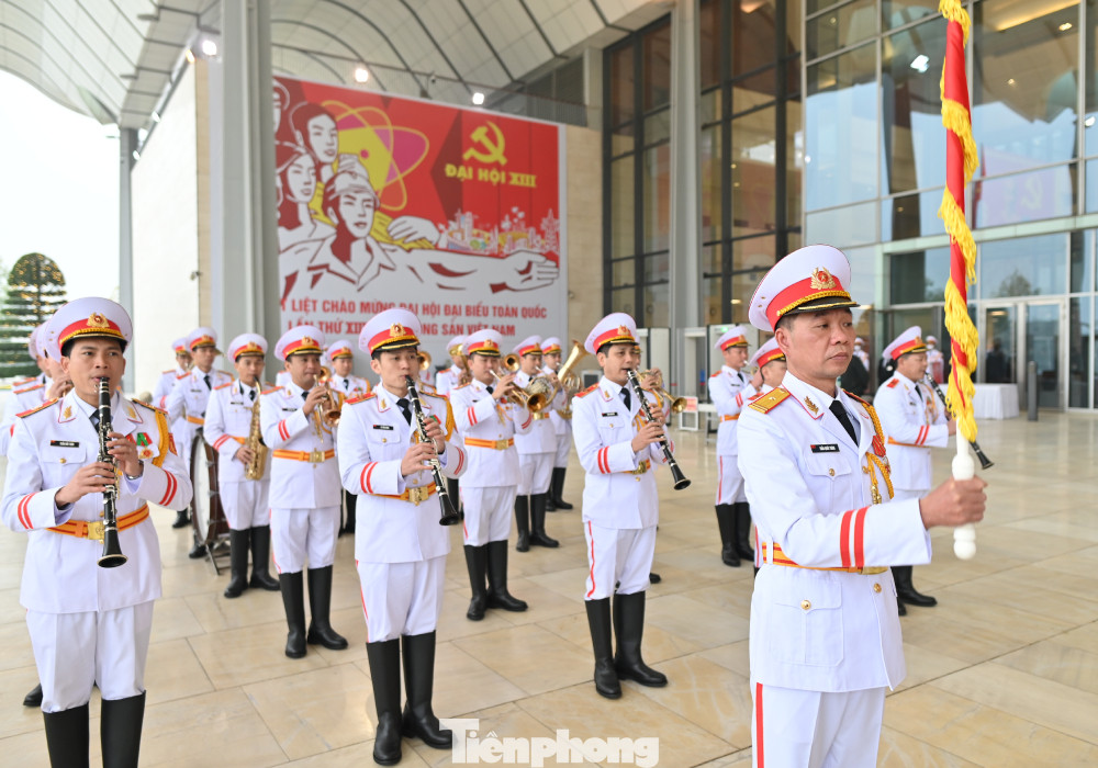 Cán bộ, chiến sỹ Đoàn nghi lễ Quân đội sẵn sàng phục vụ đại hội.