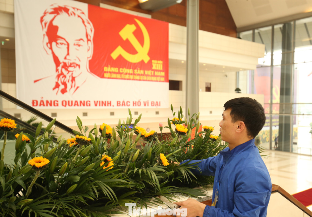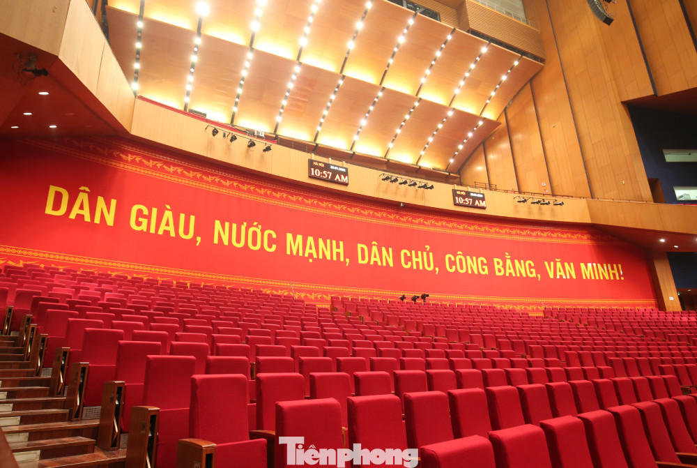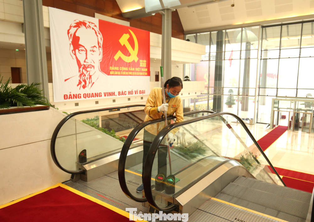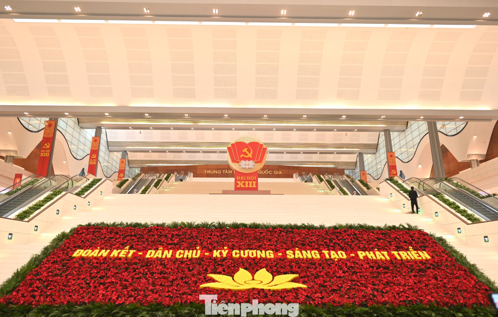 Tại đây, sẽ đón gần 1.600 đại biểu về dự Đại hội lần thứ XIII của Đảng. Cùng với việc trang hoàng rực rỡ, công tác kiểm tra an ninh cũng đang được hoàn tất, đảm bảo an toàn tuyệt đối. Trung tâm Hội nghị quốc gia đã sẵn sàng cho Đại hội lần thứ XIII của Đảng
