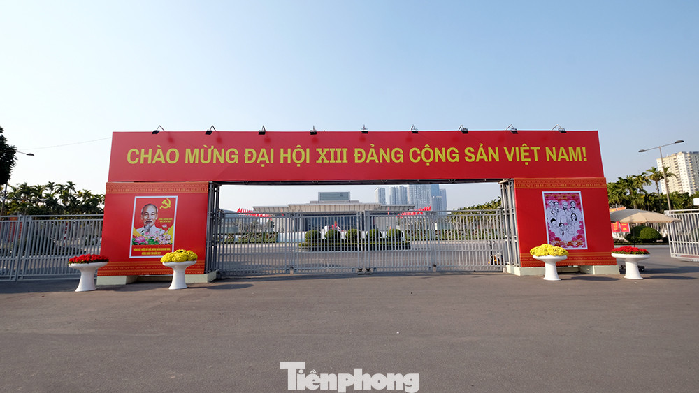 Đúng một tuần nữa diễn ra Đại hội đại biểu lần thứ XIII của Đảng, khu vực Trung tâm Hội nghị Quốc gia đang được trang hoàng cờ hoa rực rỡ.