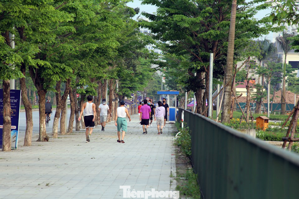 Vào buổi chiều và tối mỗi ngày, công viên này có hàng trăm lượt người di chuyển qua đây để tập thể dục. Nhiều người đi thành nhóm, không đeo khẩu trang, không đảm bảo khoảng cách phòng chống COVID-19 theo khuyến cáo của Bộ Y tế.
