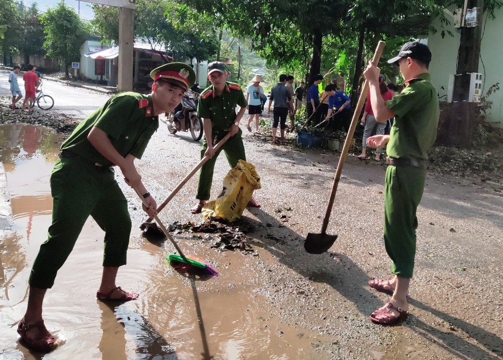 Đoàn viên thanh niên lực lượng vũ trang tại TT-Huế tích cực làm vệ sinh, dọn dẹp bùn đất, xử lý môi trường sau bão số 9.