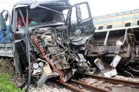 Xe tải bị kéo lê một đoạn, đầu xe gần như bẹp dúm. Đầu tàu hỏa bị trật khỏi đường ray. Thông tin ban đầu, tài xế xe tải bị thương nặng đã được đưa đi cấp cứu.