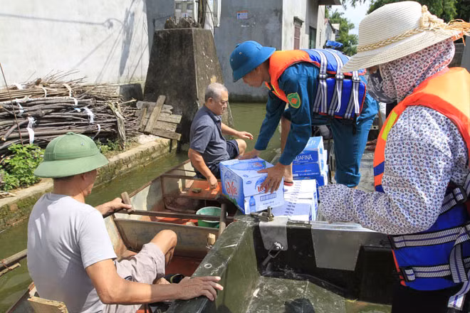Ngay đầu thôn Cấn Hạ (xã Cấn Hữu, Quốc Oai, Hà Nội), đại úy Tống Văn Tâm và các đồng đội, dân quân tự vệ huyện Quốc Oai làm nhiệm vụ đưa đón nhân dân từ khu vực ngập lụt xóm Bến Vôi ra ngoài. Chục ngày nước ngập là chục ngày anh Tâm phải đi làm cả ngày, hôm nào cũng đi từ tờ mờ sáng đến tối mịt mới về. Ngày nào về muộn, anh ngủ luôn trên cơ quan, không về nhà. Theo ông Bùi Đào Hoàng, trưởng thôn Cấn Hạ, xóm Bến Vôi chục ngày nay bị cô lập với bên ngoài. Mọi di chuyển ra ngoài đều không được vì nước ngập ngang đầu người. Huyện đội Quốc Oai bố trí hai chiếc xuồng để chuyên chở người dân và các cháu học sinh đi học. Ngoài ra, người dân cũng dùng thuyền, vốn là thuyền rồng để đua trong lễ hội ra di chuyển.