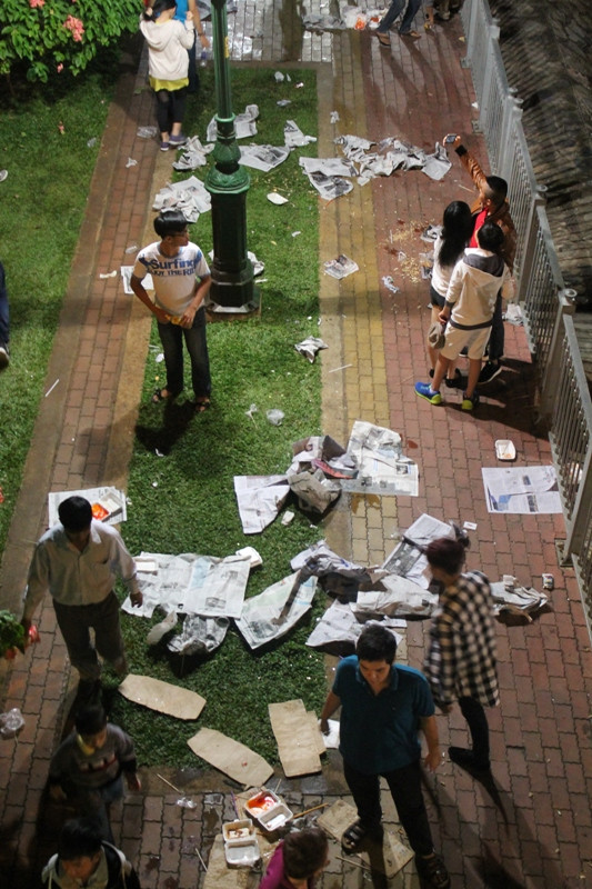 Một công nhân vệ sinh cho biết, năm nào cũng thế, cả tổ phải tranh thủ vừa kết thúc bắn pháo hoa là xuống đường quét dọn ngay để ngày đầu năm mới, thành phố không còn rác. "Hy vọng những năm sau, mọi người ý thức hơn, bỏ rác vào đúng nơi quy định để anh em công nhân đỡ vất vả", anh công nhân cho biết.