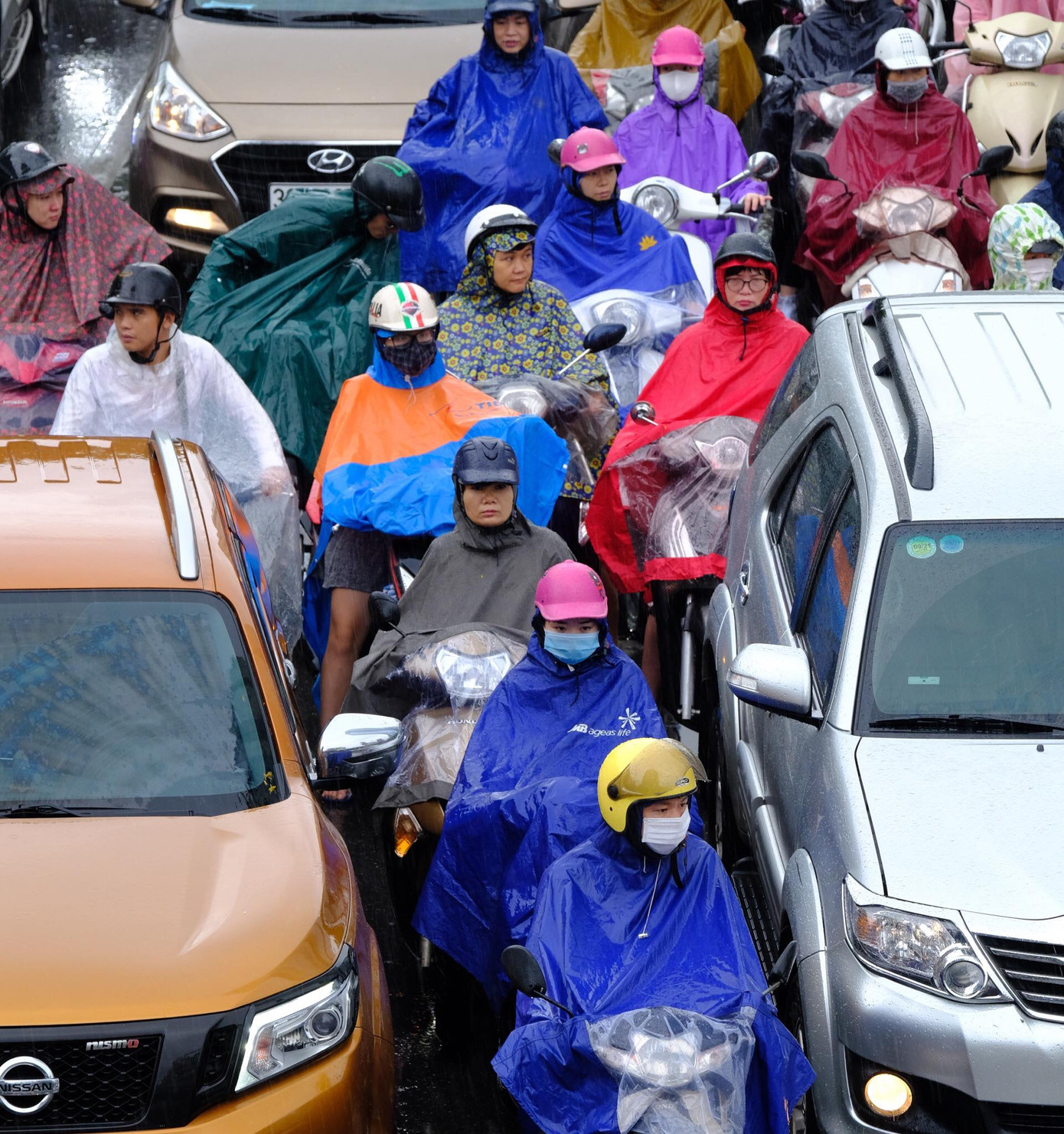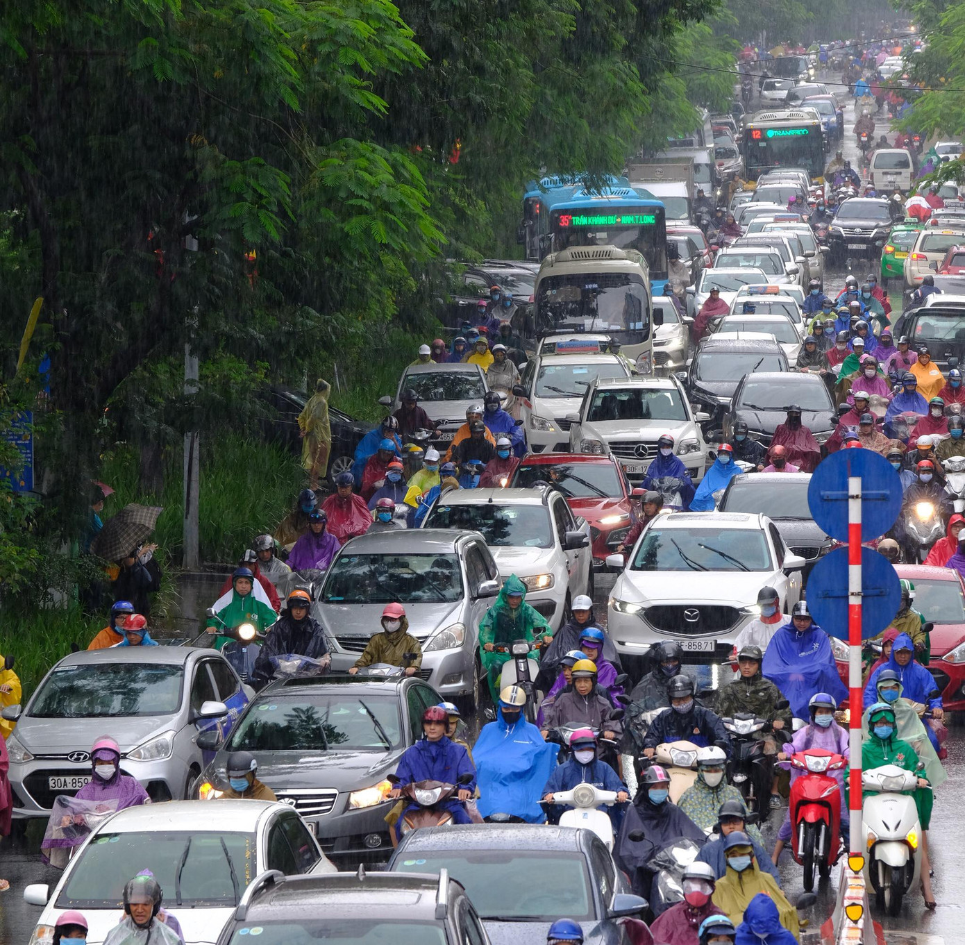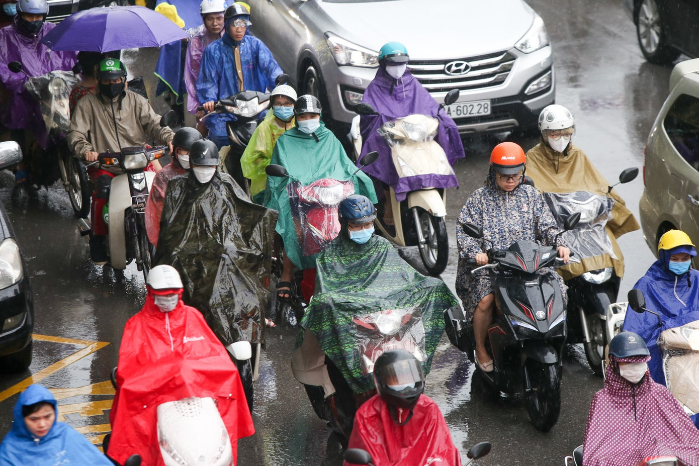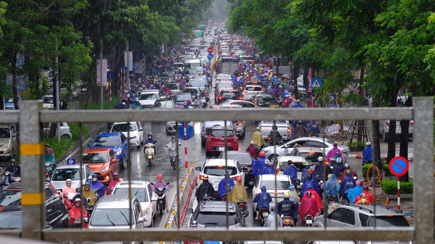 Người và xe "chôn chân" tại chỗ dưới cơn mưa