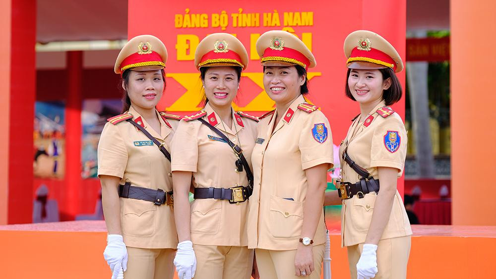 Các "bông hồng thép" của CSGT Hà Nam làm nhiệm vụ.