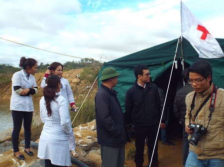 Bộ trưởng Bộ Y tế Nguyễn Thị Kim Tiến đang có mặt để chỉ đạo công tác sơ cấp cứu ngay khi các công nhân được đưa ra khỏi hầm.