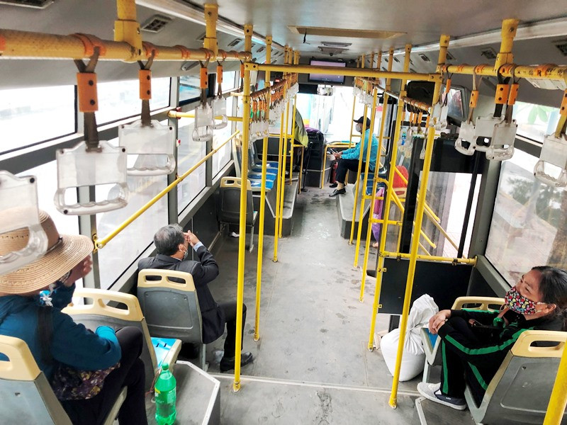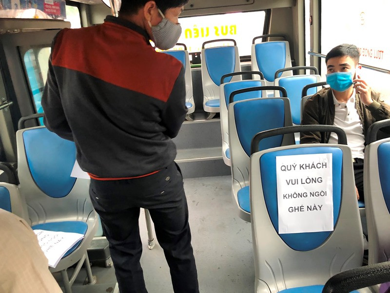 Ngày hôm nay, ngoài được yêu cầu đeo khẩu trang, tất cả hành khách đi xe buýt đều tuân thủ quy định ngồi giãn cách để phòng dịch của "nhà xe".