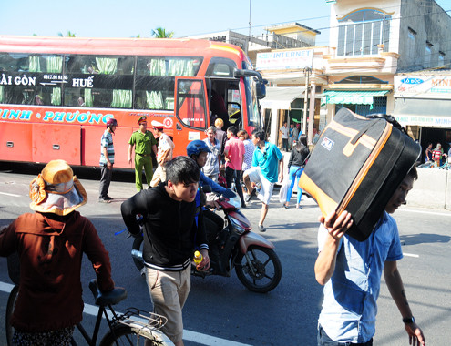 "Chiếc xe bất ngờ chao đảo, rồi một tiếng rầm vang lên. Ai cũng nháo nhào, chen lấn thoát ra cửa. Lúc đầu chúng tôi cứ tưởng xe nổ lốp", một hành khách kể.